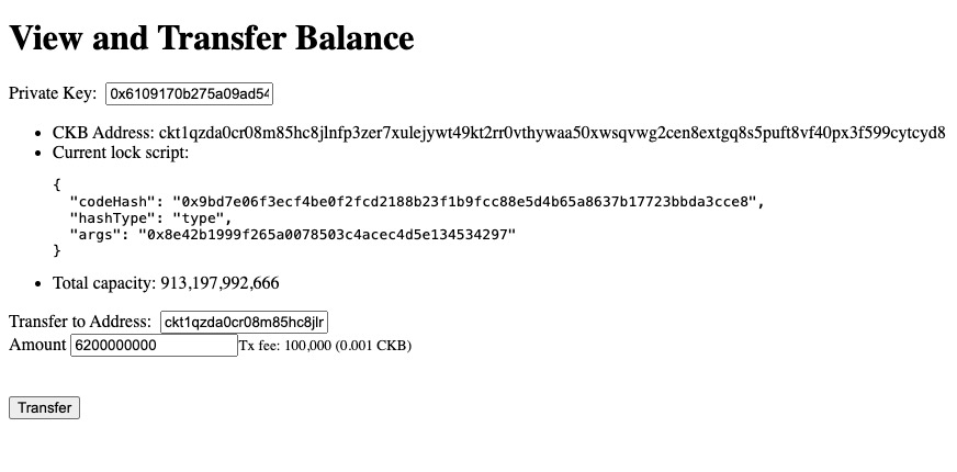In this tutorial, you will learn how to write a simple dApp to transfer CKB balance from one account to another.